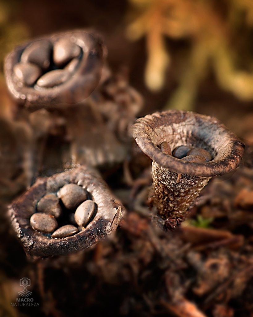 Pero lo más fascinante es su método de dispersión: cuando las gotas de lluvia impactan en la copa, actúan como diminutos proyectiles que expulsan los peridiolos al exterior. Así, la lluvia no solo hidrata, sino que se convierte en aliada para la propagación de la especie.